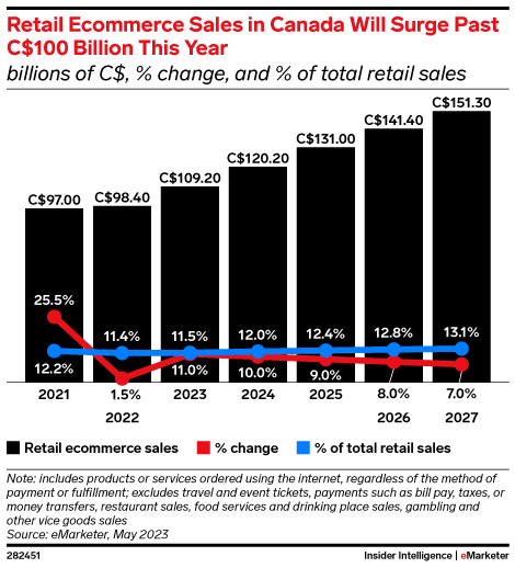 Canada is making up for its slow entry to the ecommerce revolution. Massive growth in the past five years is leading to a new milestone in 2023.