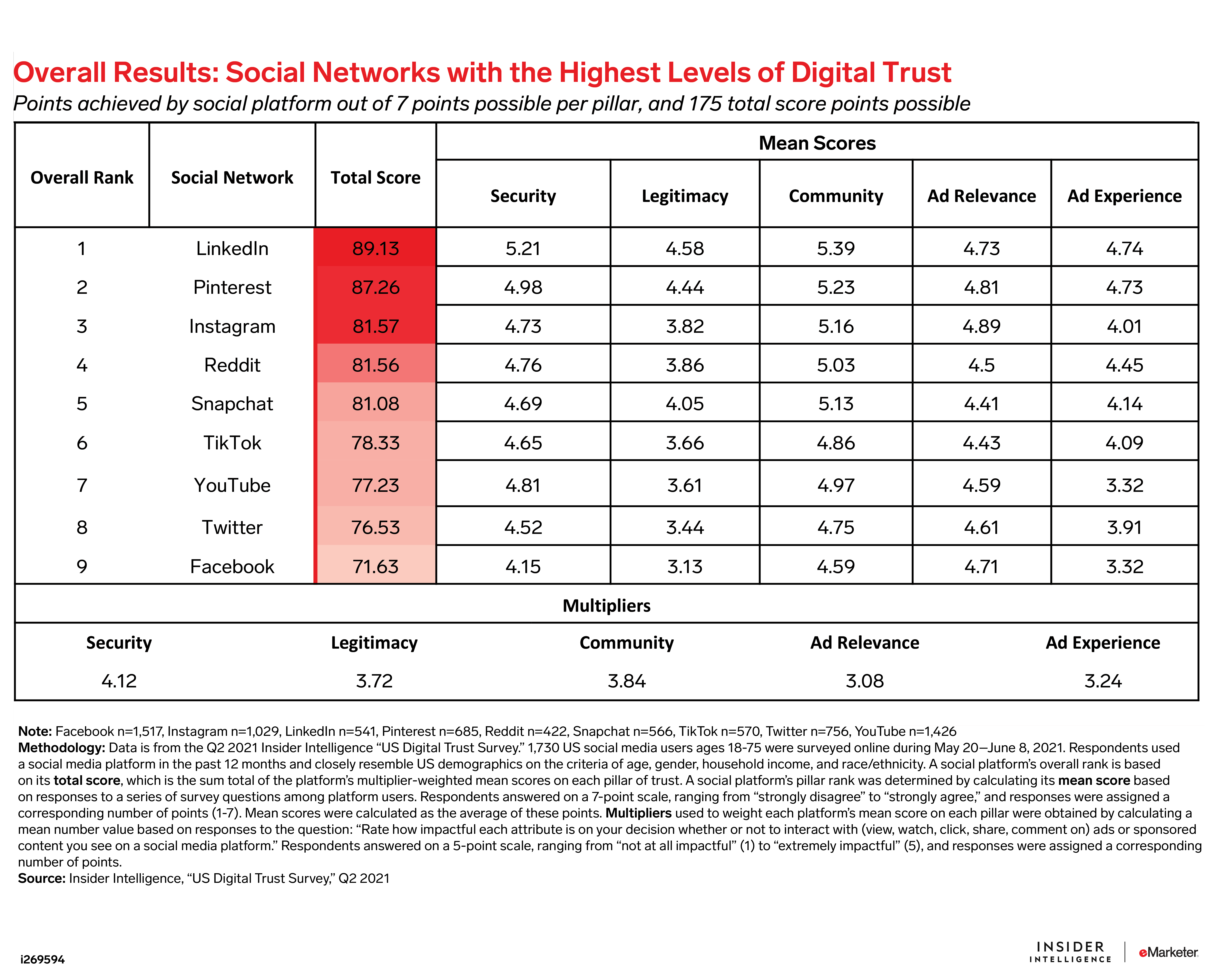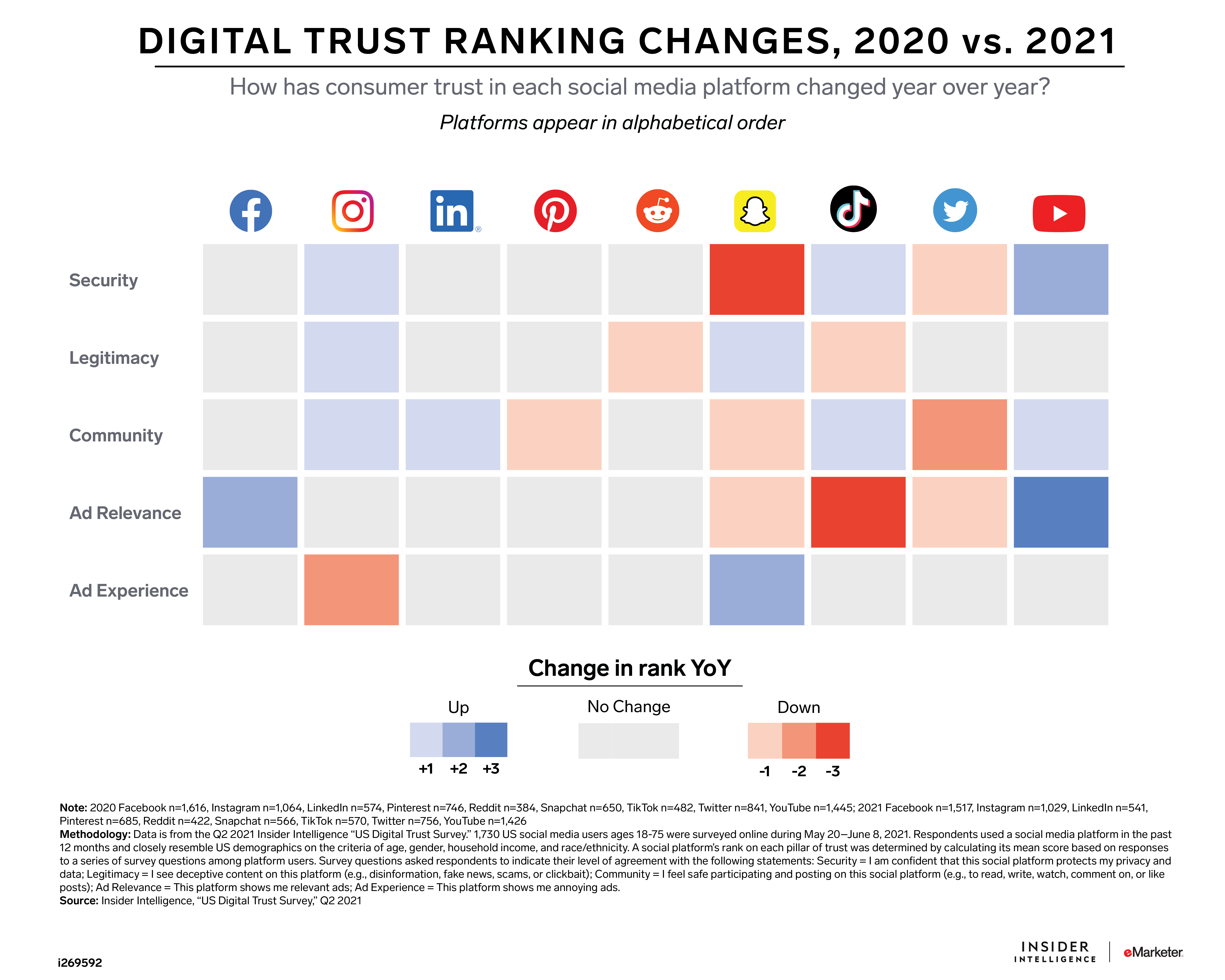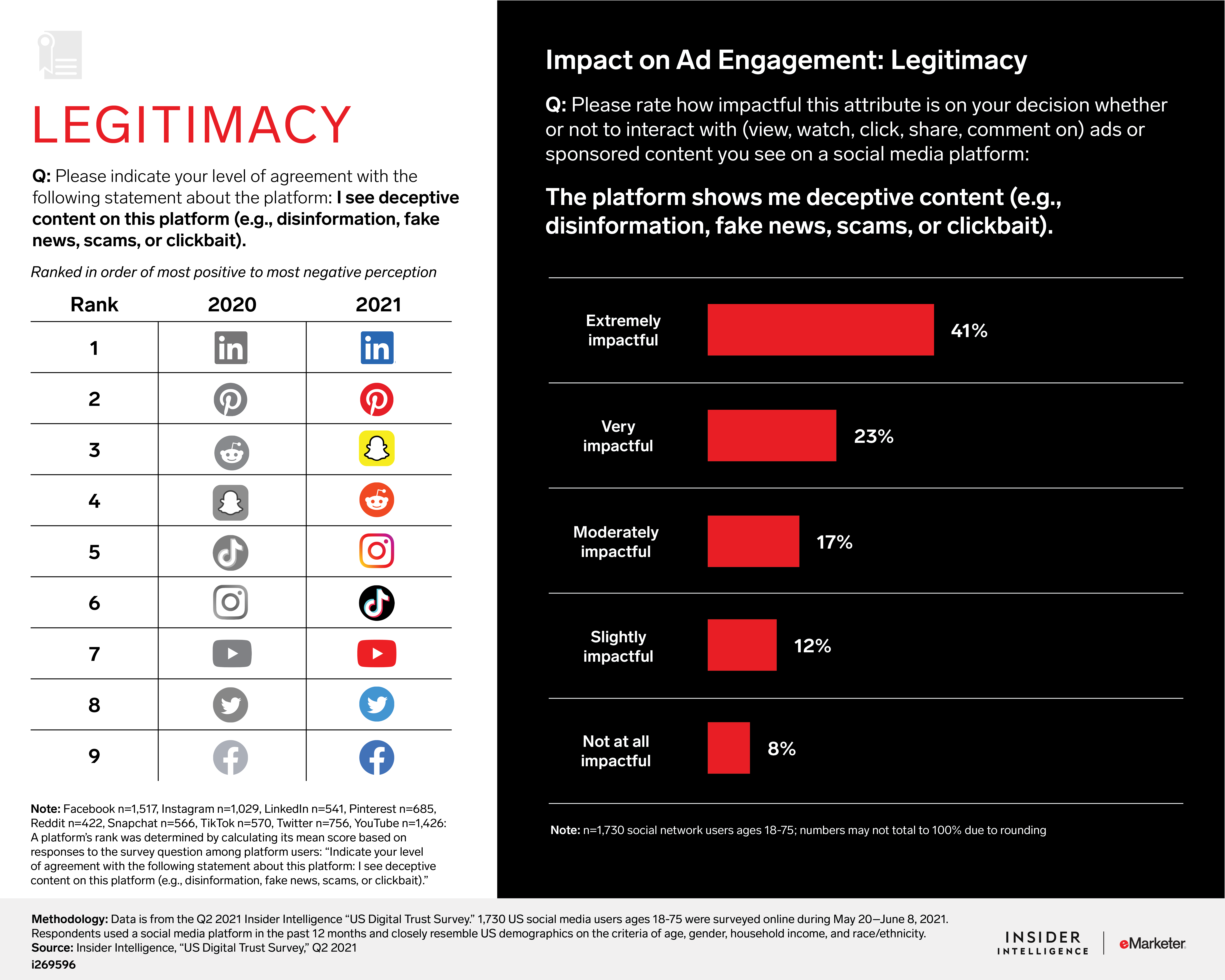 Issues of deceptive content, privacy, and safety continue to plague social media. In this report, we analyze the data from our fifth annual “US Digital Trust Survey" to evaluate how US social media users feel about nine major social media platforms—Facebook, Instagram, LinkedIn, Pinterest, Reddit, Snapchat, TikTok, Twitter, and YouTube—and reveal the extent to which trust affects usage and attitudes toward advertising.