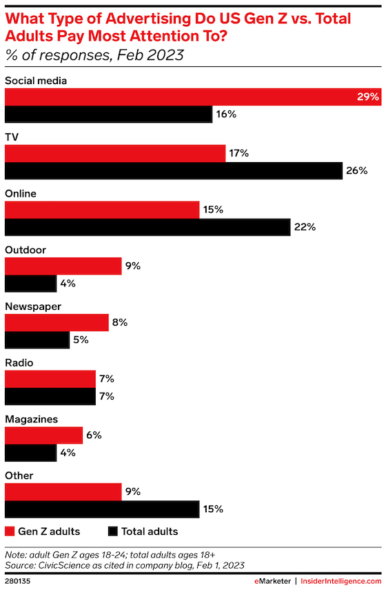 Gen Z gives social media ads far more attention than TV commercials