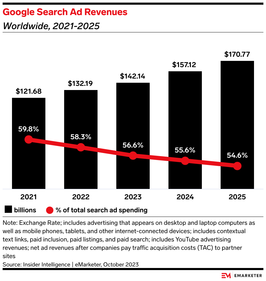 Our take: 2024 is shaping up to be a year of challenging lawsuits and regulatory changes that aim to alter Big Tech’s long-standing and most profitable business models. Google and many of its competitors are likely focusing on the long game.