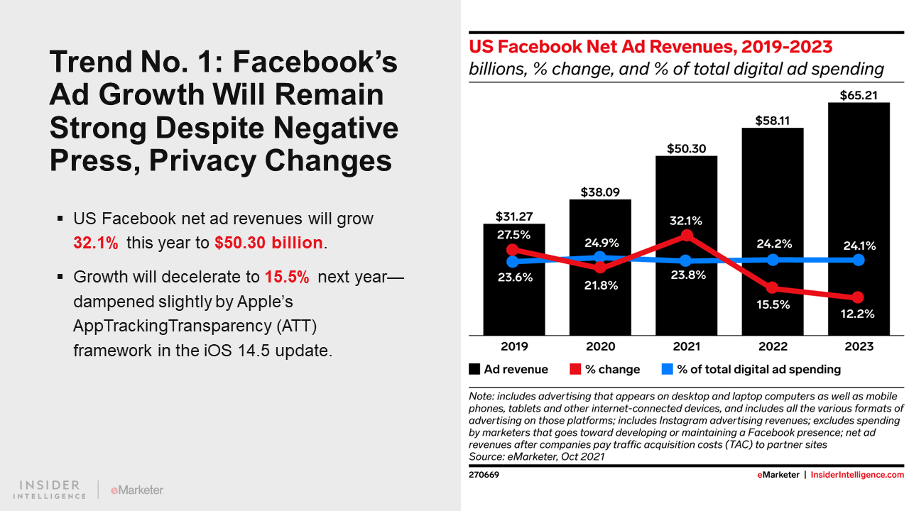 KEY STAT: Despite negative press and privacy challenges, Facebook’s US ad revenues will not decline in 2022.