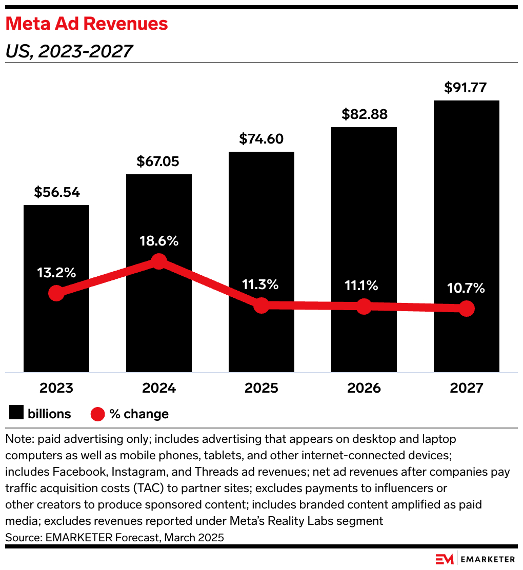 - Meta’s focus on AI-powered ad targeting and content recommendations is enhancing engagement and monetization across its platforms.
