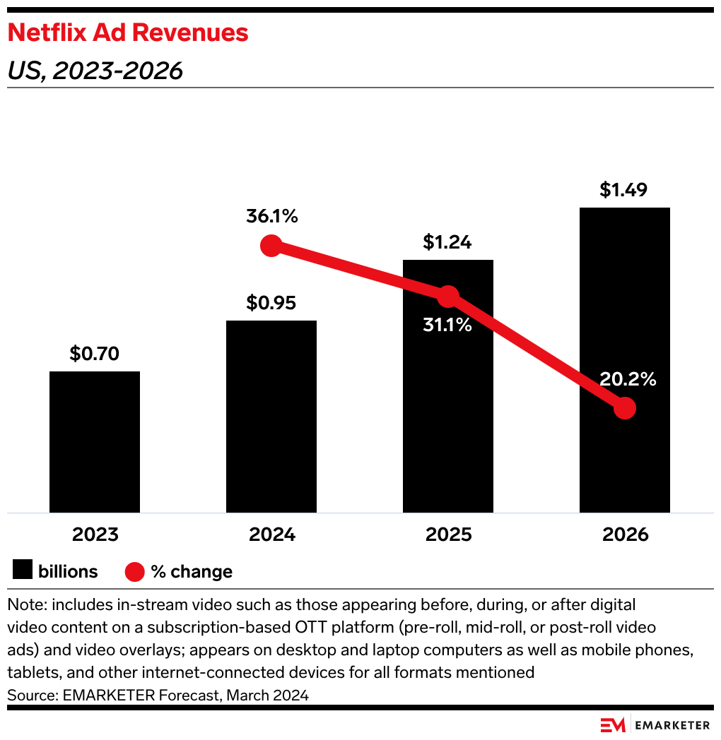 - Netflix's ad-supported tier now accounts for half of new memberships in available markets. While its ad business has yet to be a major revenue driver, it continues to build scale and attract more advertisers, with deals made through major programmatic marketplaces like Google Display & Video 360 and The Trade Desk.