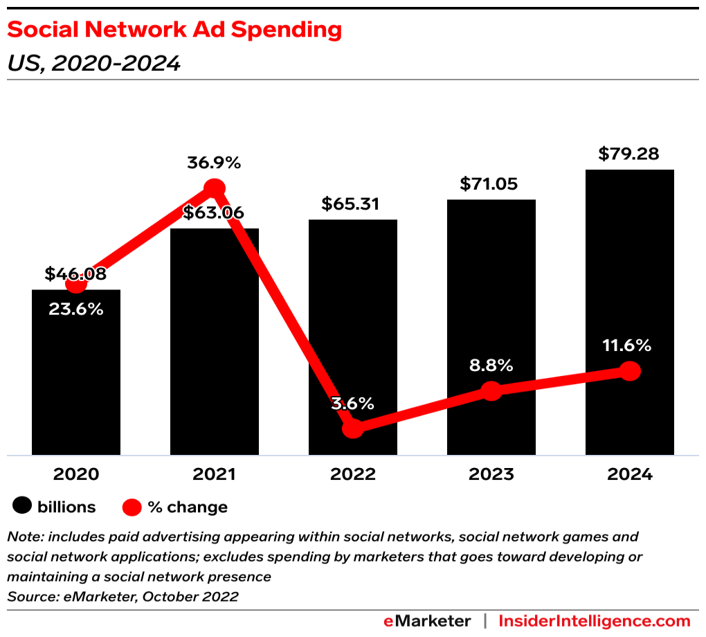 KEY STAT: From 2021 through 2024, the compound annual growth rate (CAGR) for social network ad spending will be just 7.9%.