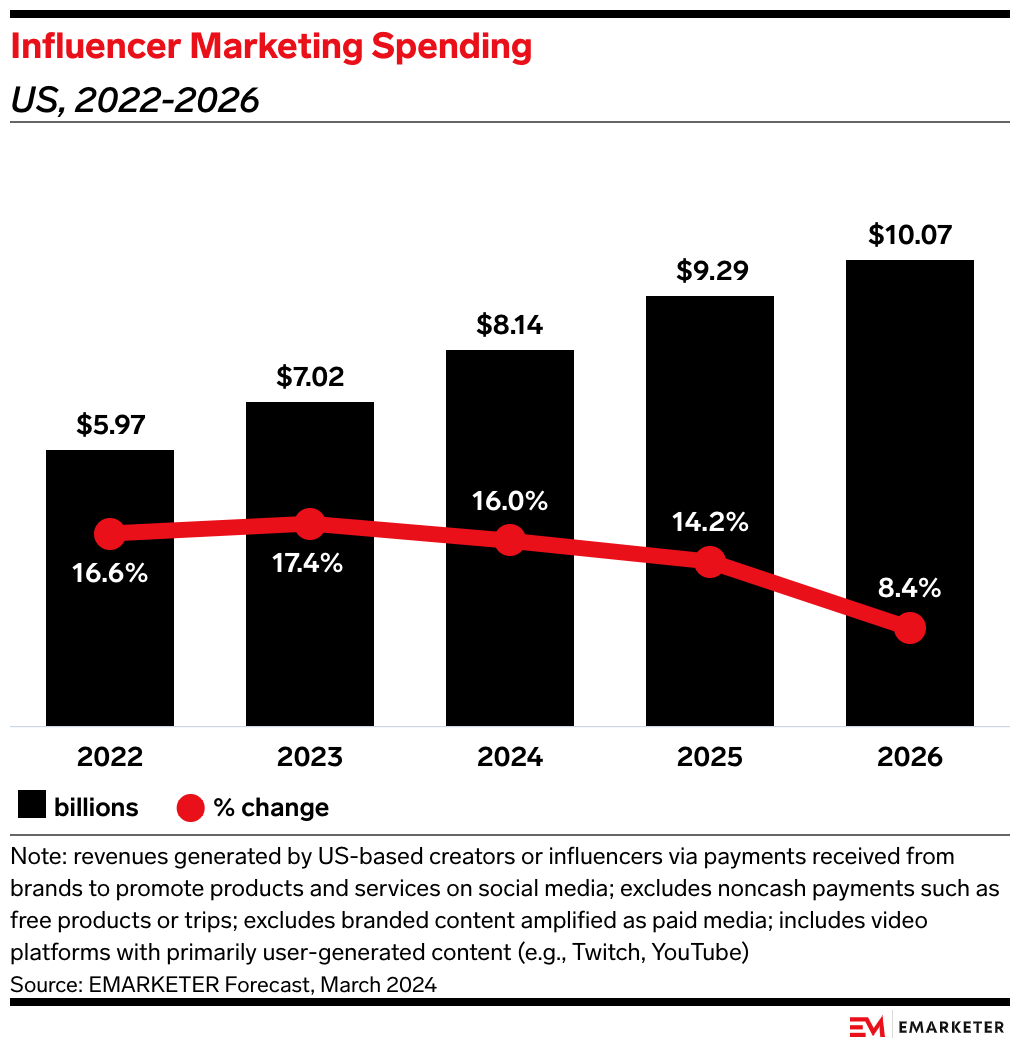 Attracting creators: With a TikTok ban looming and US influencer marketing spending set to grow 16% this year to $8.14 billion, Snap is attempting to position itself to seize creators looking for TikTok alternatives and marketers eager to partner with popular figures.