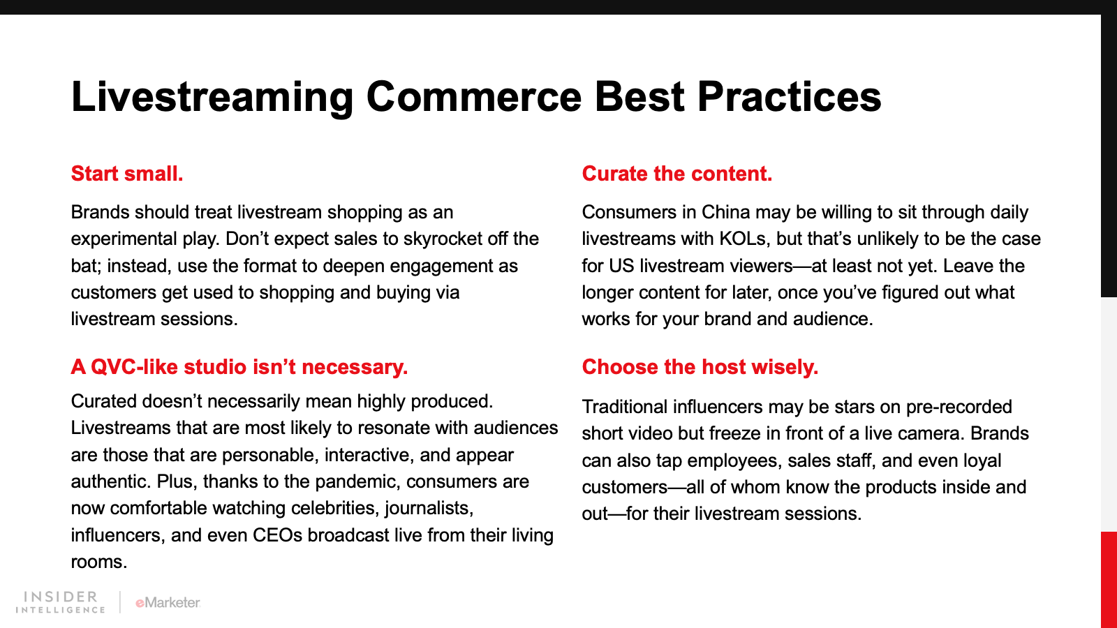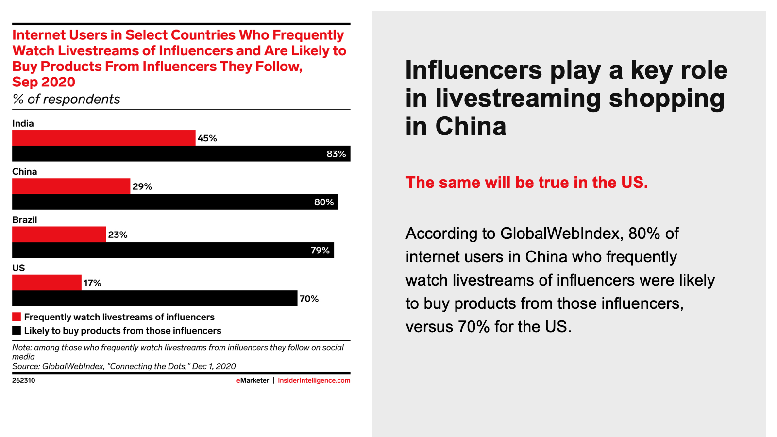 Social commerce in the US is following in China’s footsteps, but the path to success won’t be exactly the same. Here’s how US brands can use China as a road map for their social commerce strategies, including livestream shopping.