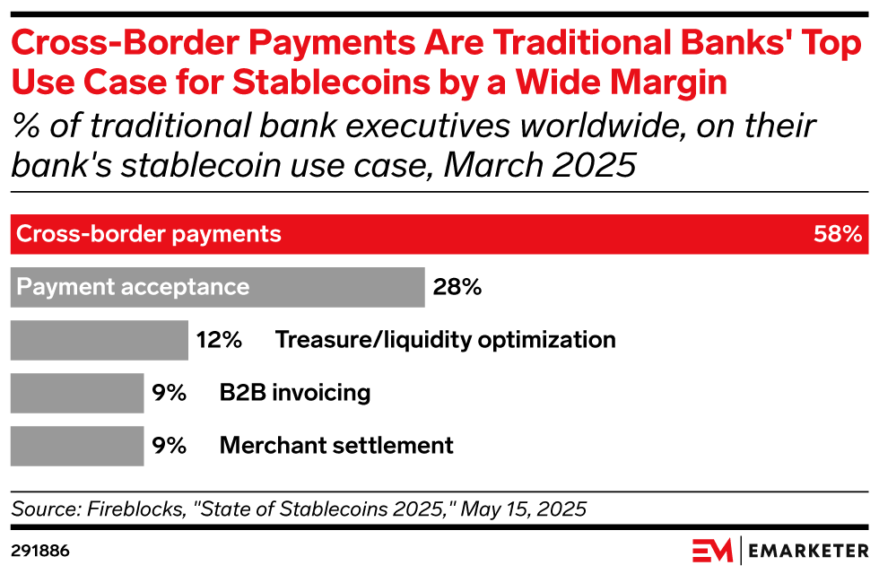 What this means for payment providers: Stablecoins are inching closer to becoming banking's next payment rails. While cross-border payments remain traditional banks’ largest stablecoin opportunity, issuers should consider loyalty-style stablecoin rewards to entice more consumers into utilizing crypto-backed financial products and services.