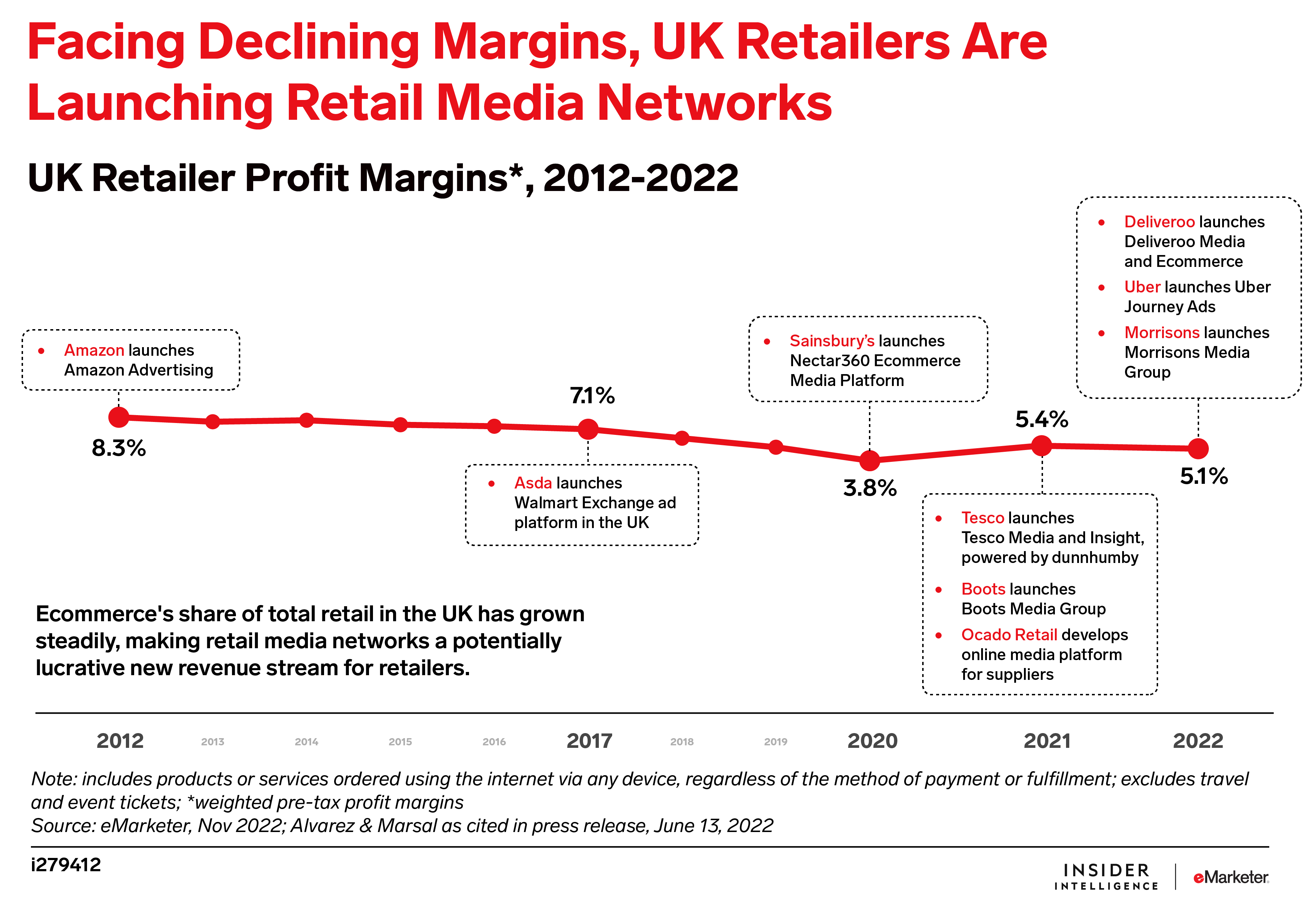 Retail media offers retailers serious margins. Retail media networks (RMNs) are gaining ground as inflation-hit retailers look for ways to boost profits and capitalize on the shift to online shopping. RMNs could provide margins of between 40% and 80%, while Alvarez & Marsal forecasts that average retail margins are only 5%.