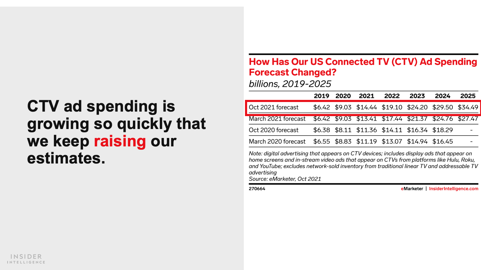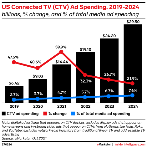 KEY STAT: This year, US advertisers will spend $14.44 billion on CTV, an increase of 59.9% over 2020.