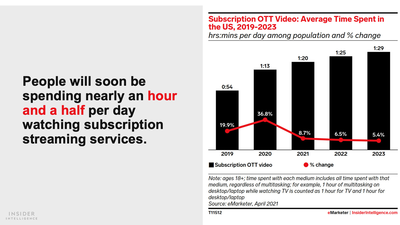 This year, US residents will spend 80 minutes per day with subscription over-the-top (OTT) video, up 8.7% over the previous year.