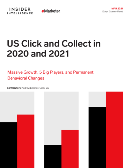 US click-and-collect sales more than doubled in 2020 and will sustain double-digit growth rates over the next four years, according to our latest forecast. We estimate that US shoppers spent $72.46 billion via click and collect last year, accounting for 9.1% of all ecommerce sales. This year, those figures will increase to $83.47 billion and 9.9%, respectively.