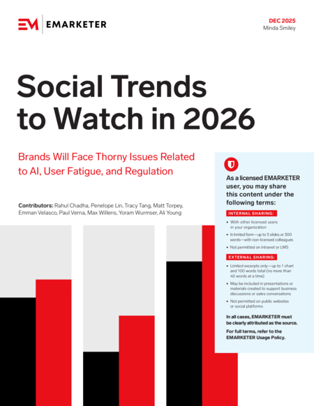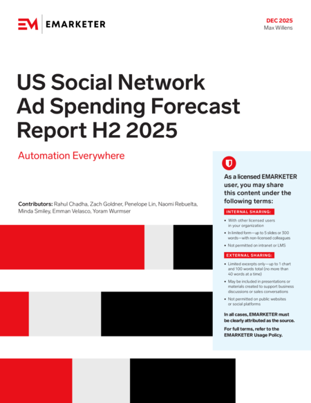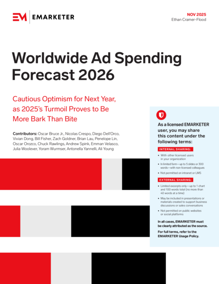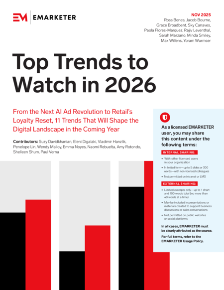 By clicking "Sign Up", you agree to receive emails from EMARKETER (e.g. FYIs, partner content, webinars, and other offers) and accept our Terms of Service and Privacy Policy. You can opt-out at any time.