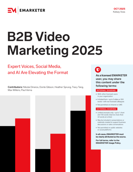 By clicking "Sign Up", you agree to receive emails from EMARKETER (e.g. FYIs, partner content, webinars, and other offers) and accept our Terms of Service and Privacy Policy. You can opt-out at any time.