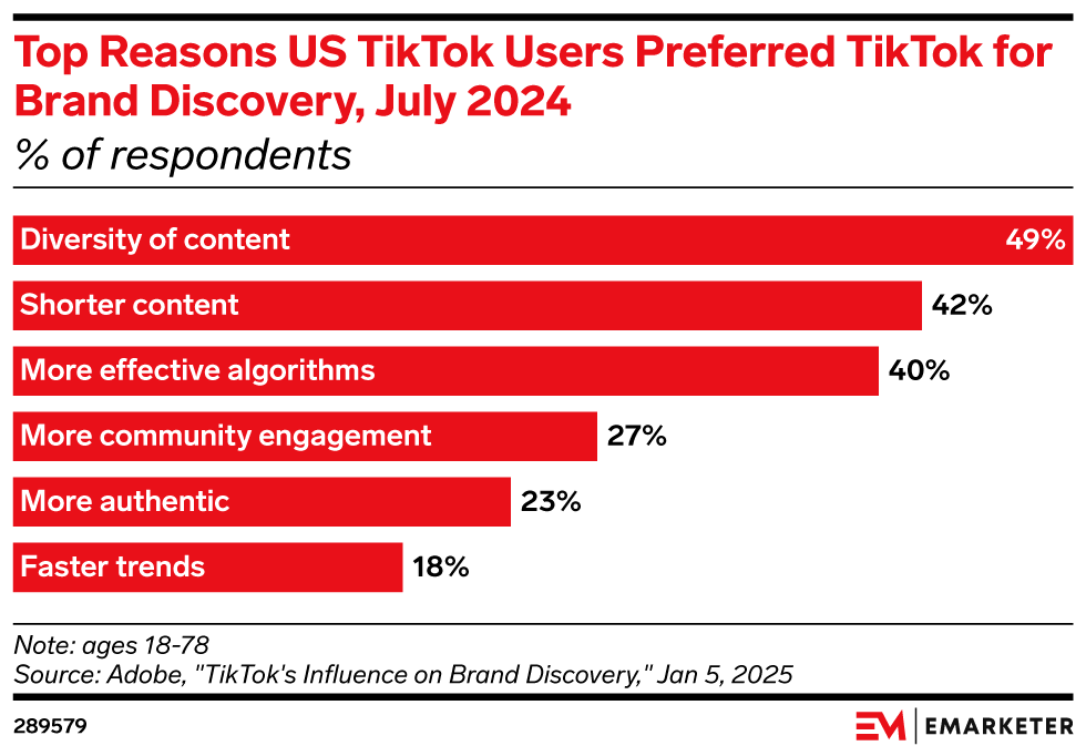 ByteDance will maintain control over TikTok’s US ecommerce and advertising businesses under the deal brokered by the White House, according to Reuters. Continued uncertainty around the TikTok deal and broader economic terms requires brands and advertisers to stay flexible. That’s harder to do for sellers, since few social commerce alternatives have the scale and success of TikTok Shop. Still, platforms like YouTube and Pinterest can offer similar opportunities to engage, inspire, and educate shoppers, while live commerce platforms like Whatnot and creator-led shopping app LTK could also emerge as winners should TikTok’s influence fade.